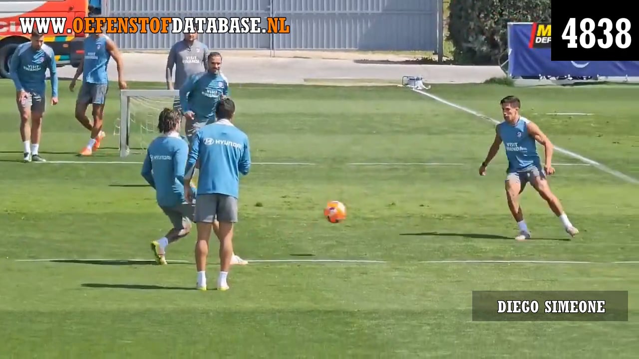 - Speler 3 (die in het veld staat) en verdediger 4 (die naast goaltje start) mogen beginnen met lopen als de bal rolt