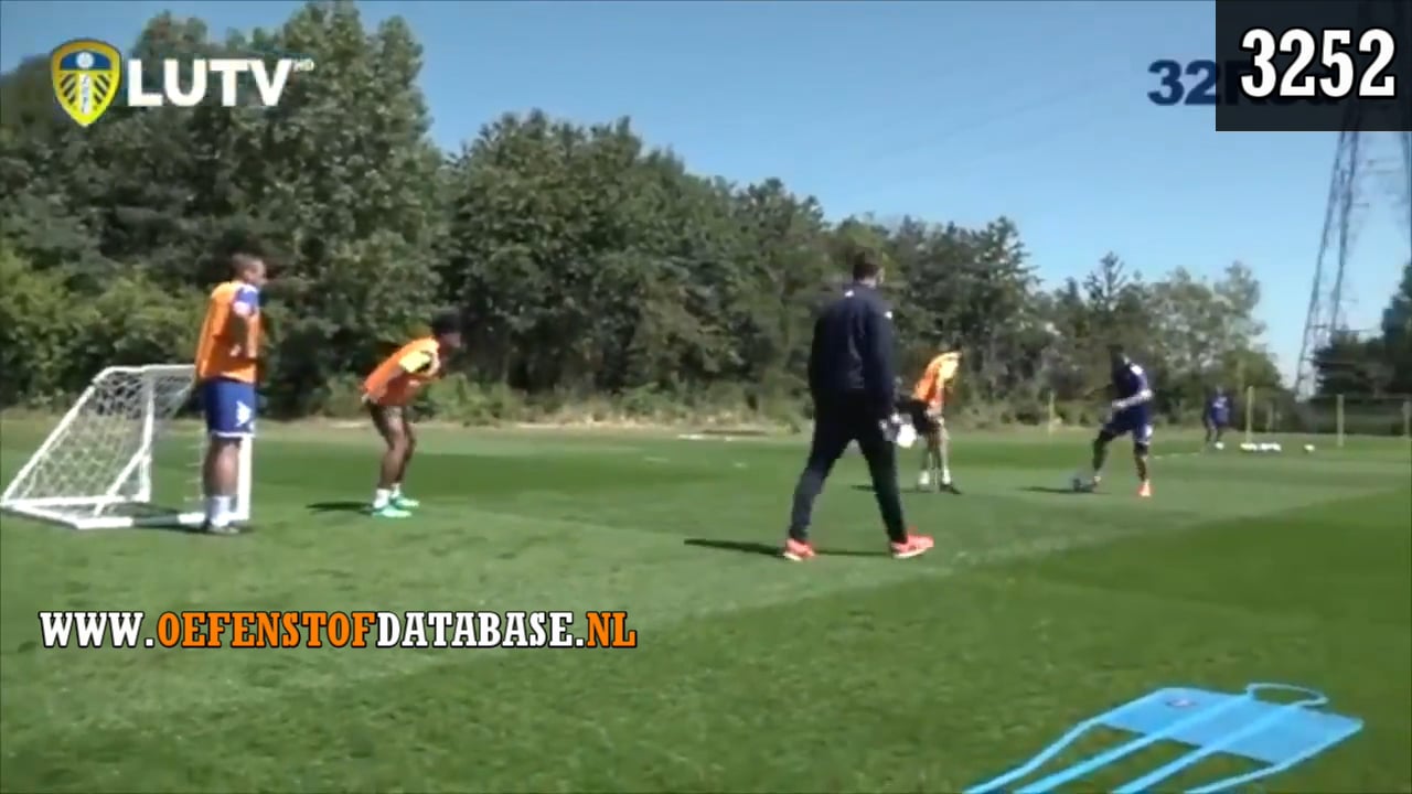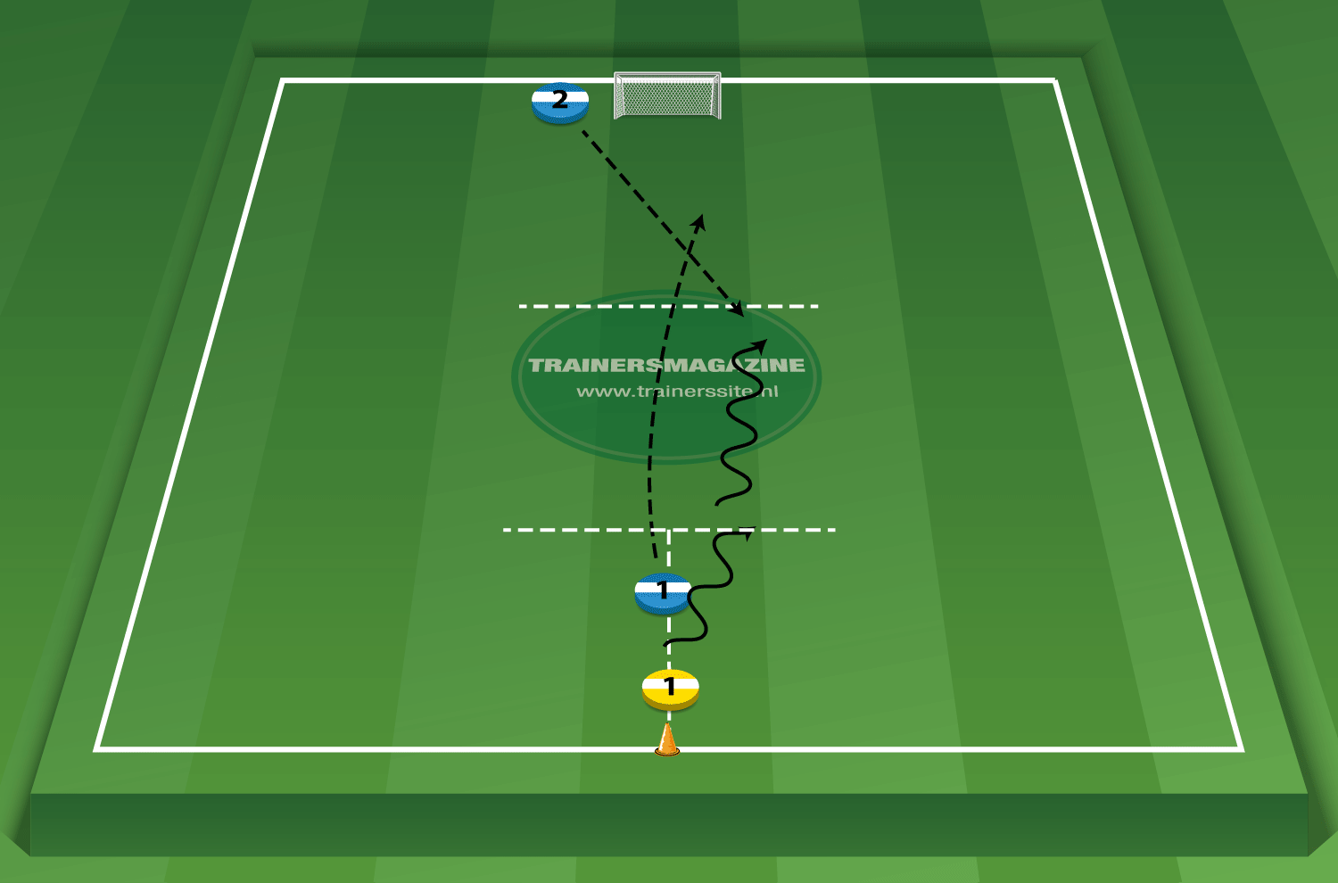 - De aanvaller start met de bal en speelt 1 tegen 1 tegen de eerste verdediger